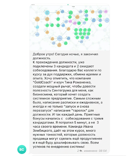 На выходе в вашей системе обучения записана видео-инструкция, как вести клиента от «интереса» к покупке, создавая ценность. Ваши менеджеры знают, как строить долгосрочные отношения с клиентом.